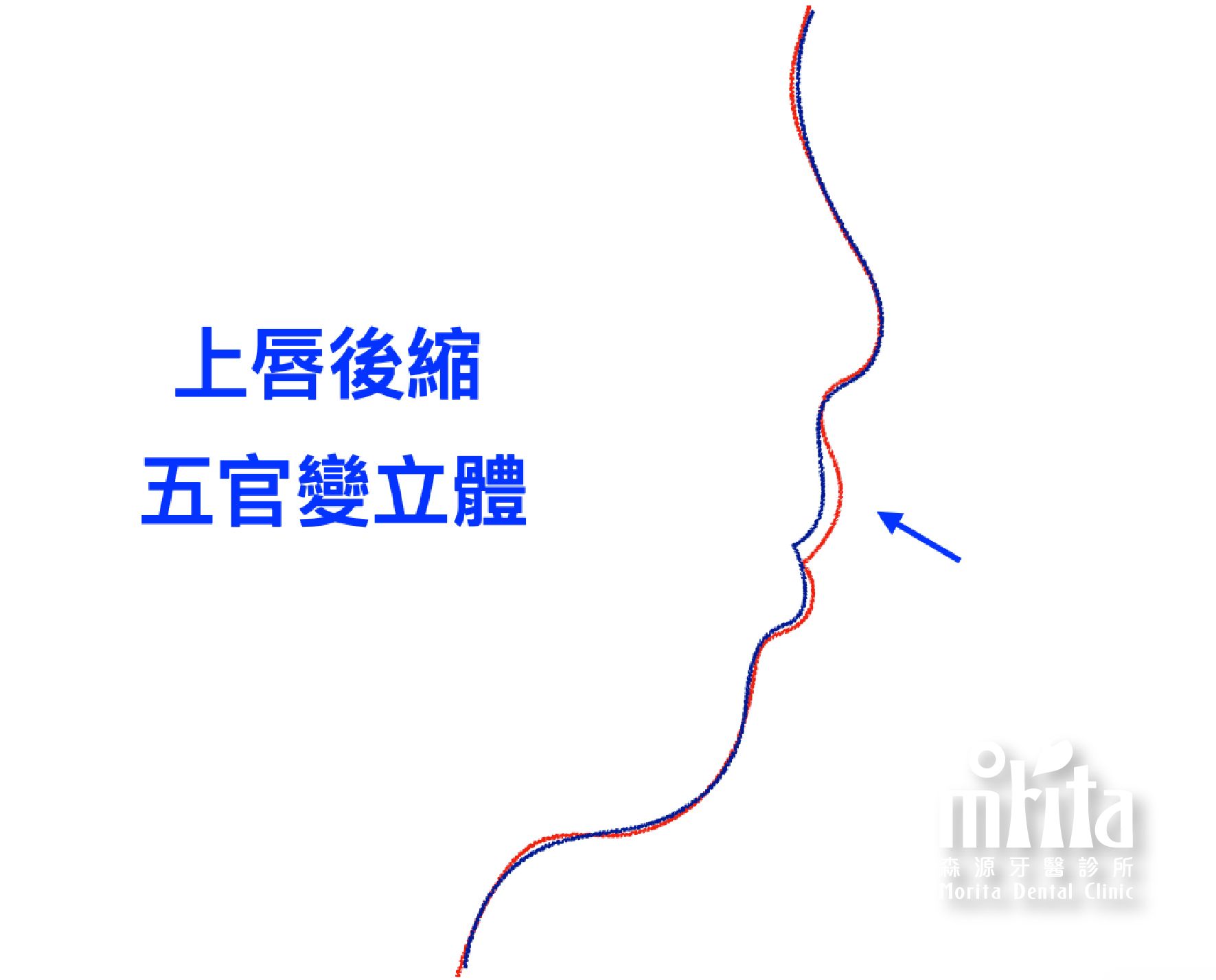 常見的嘴唇凸暴牙,藉由拔牙或是將整個齒列後退,讓嘴唇後縮,五官變得更立體,臉型也會變得更秀氣。