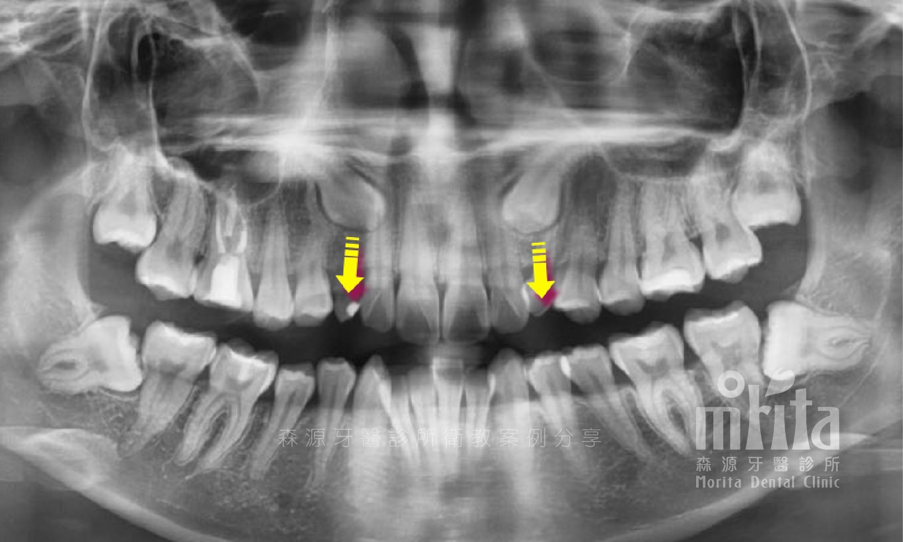 犬齒是上顎恆齒中較晚萌發的牙齒,常常會因為被鄰近牙齒佔據的生⻑空間而無法順利萌發,困難的阻生齒常常會需要藉助手術露出,以及搭配特殊裝置,才有機會順利拉出。